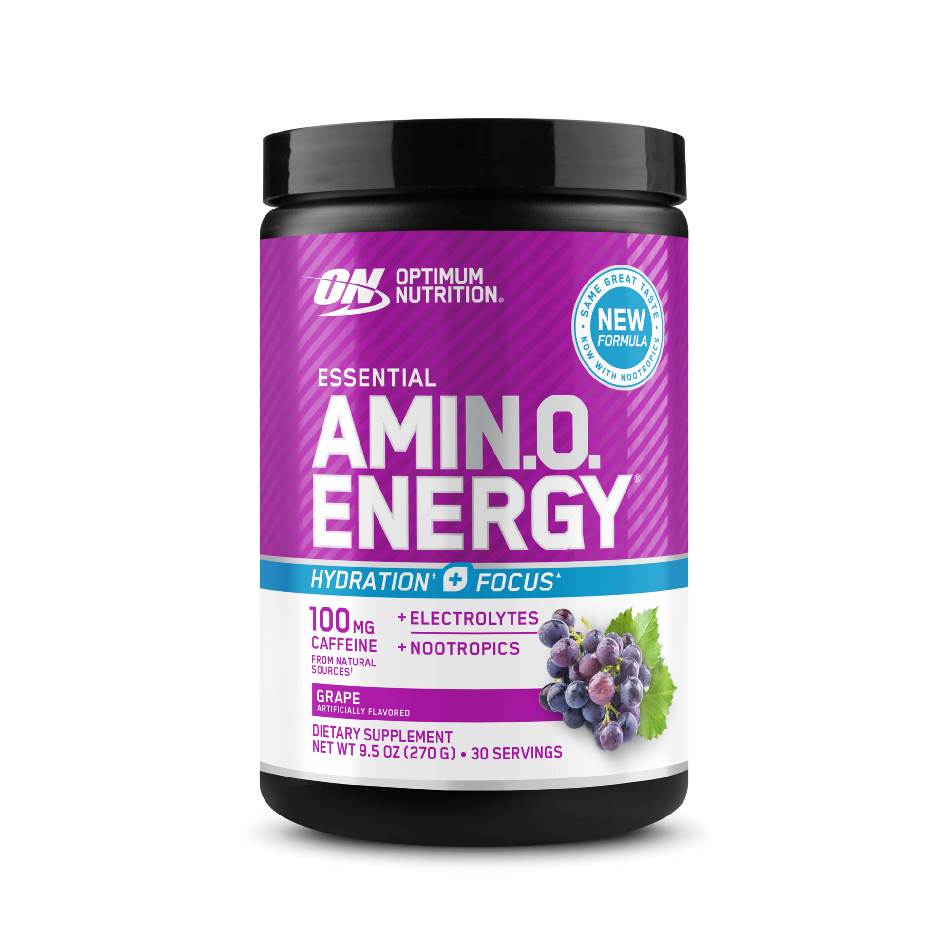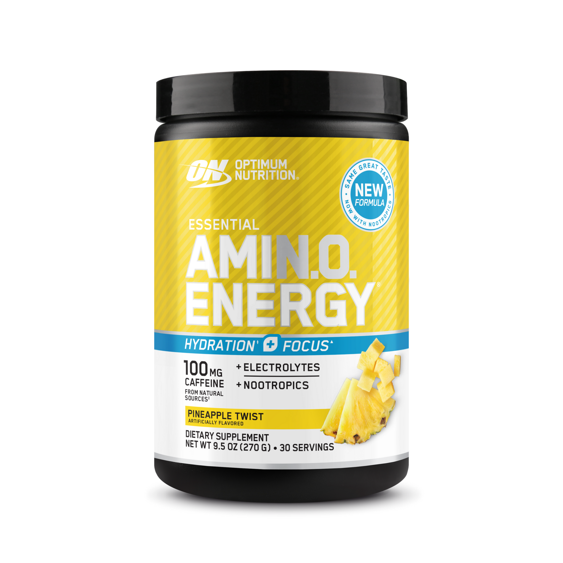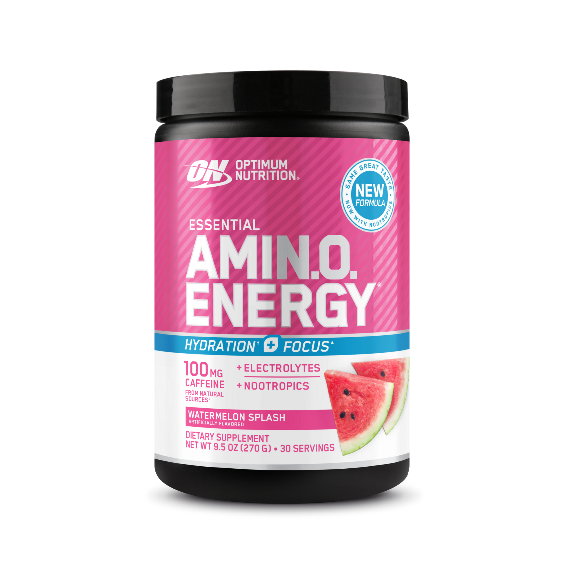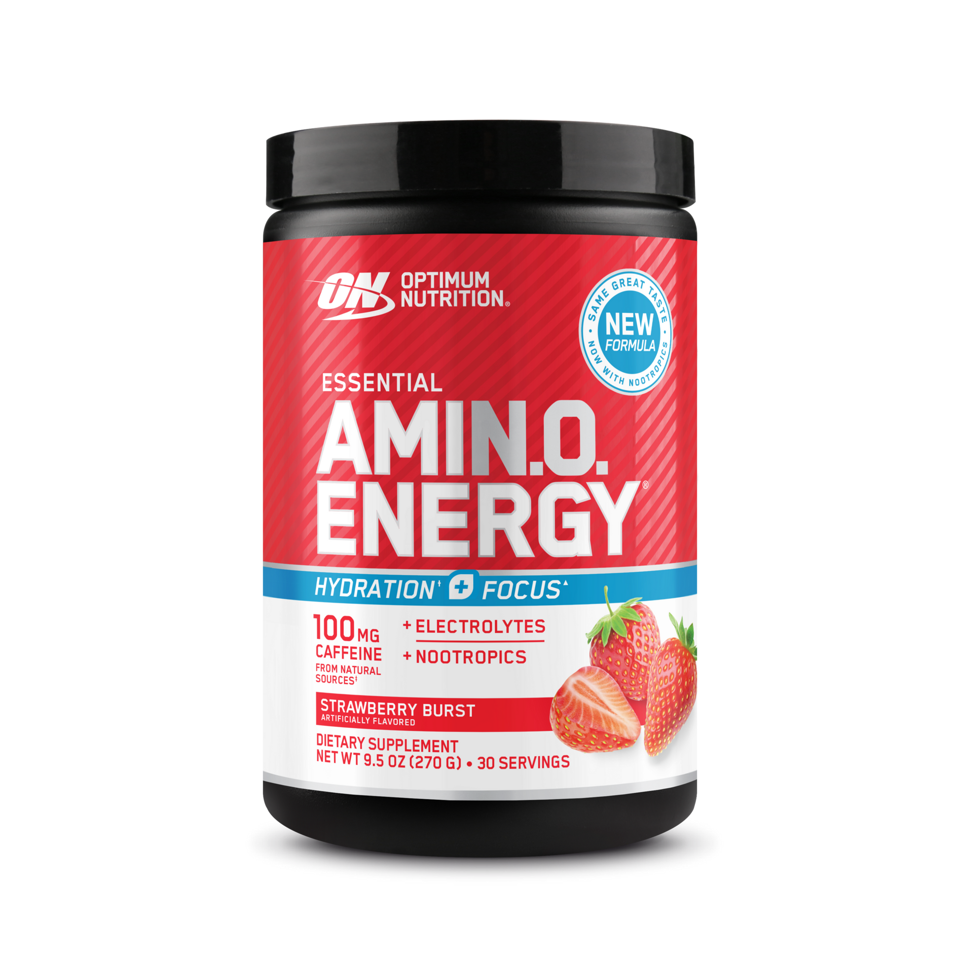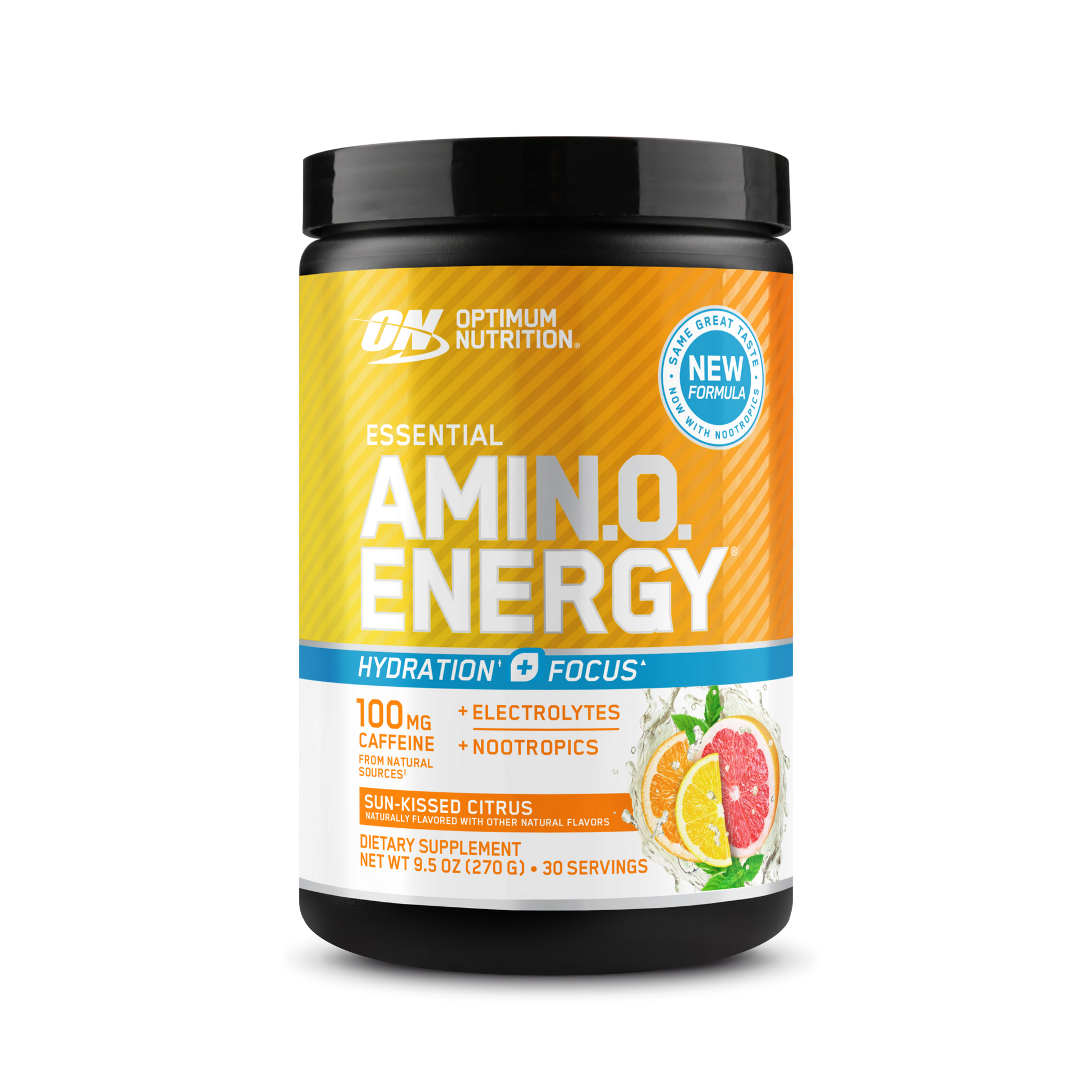 OPTIMUM NUTRITION® AMIN.O. ENERGY HYDRATION¹* + FOCUS¹ delivers the latest innovation to your fitness regimen. Dial up your energy, zero in on your workout, and get hydration support* with our enhanced 3-in-1 formula with caffeine from natural sources, electrolytes, and nootropics in every serving.